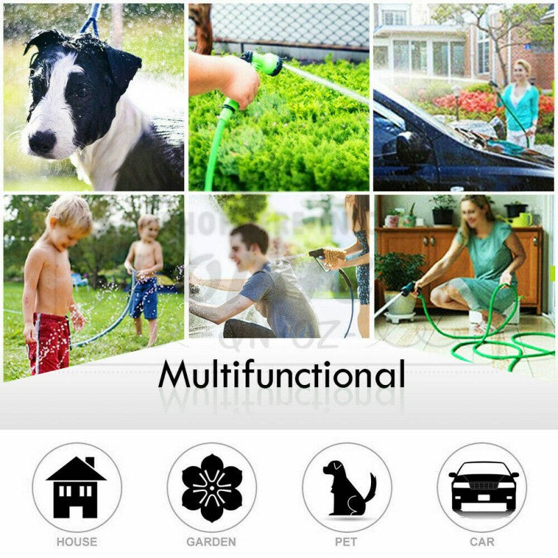 • The expandable garden hose nozzle provides 8-function water spray mode, and the rubber handle is easy to grasp and anti-slip. The extended garden hose has many uses, such as car cleaning, gardening, yard cleaning, pet bathing, etc.